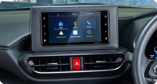 Perjalanan lebih menyenangkan dengan pemutar lagu dan navigasi dari smartphone Mulai dari Tipe R.