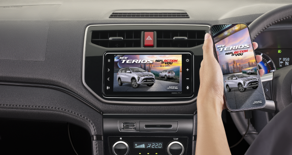 Perjalanan lebih menyenangkan dengan pemutar lagu dan navigasi dari smartphone Mulai Tipe R.